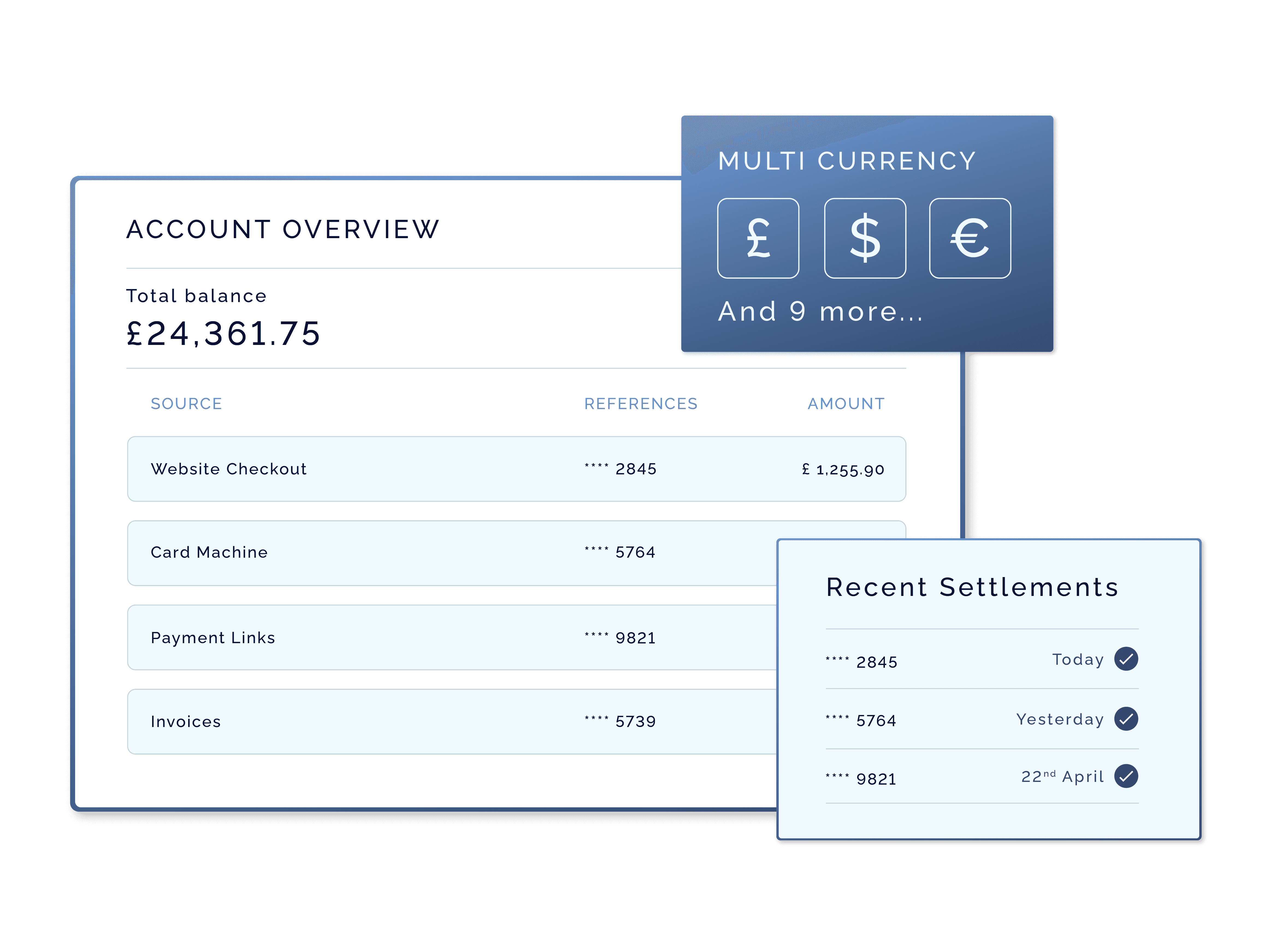 Let merchants take cards, Open Banking or links without leaving your app. Onboard them fast. See all their activity in your dashboard. Scales with your growth.